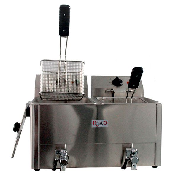 Настольная фритюрница Rosso HDF8+8 используется в заведениях быстрого питания, кафе и ресторанах для приготовления широкого спектра блюд в большом количестве горячего масла.